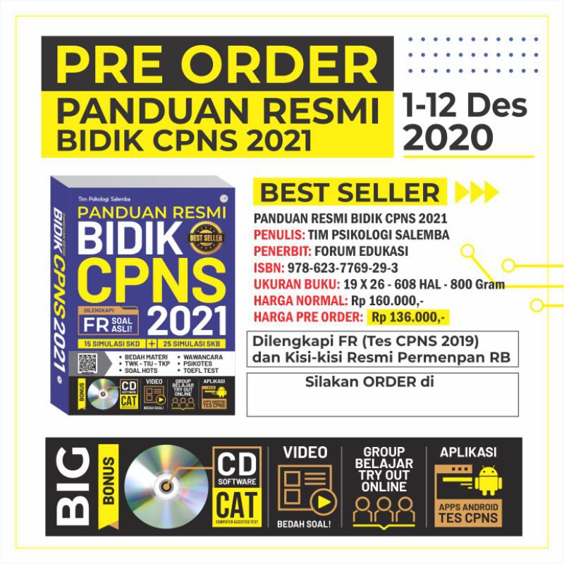 Pemerintah berencana membuka lowongan calon pegawai negeri sipil cpns awal tahun . Tryout cpns 2021 full ini dibuat untuk latihan, agar siap menghadapi seleksi kompetensi dasar (skd) yang diselenggarakan olah bkn menggunakan sistem cat. Persiapan untuk bisa lolos tes cpns memang perlu dilakukan secara matang. Jadi sebelum download soal cpns 2020/2021 pdf gratis, untuk tes karakteristik pribadi (tkp) dalam soal tersebut setidaknya terdapat 15 aspek yang akan diujikan. Tersedia banyak materi, informasi, soal beserta tryout untuk mempersiapkan menghadapi seleksi .
